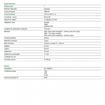 - curent nominal: 16 A la 250 V c.a