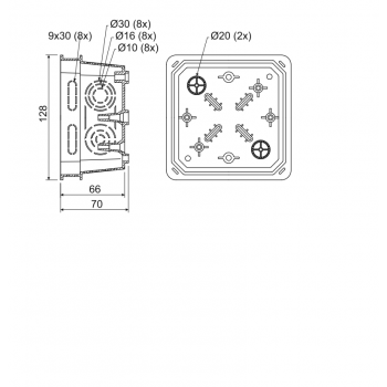 - dimensiuni: 128X128X70MM