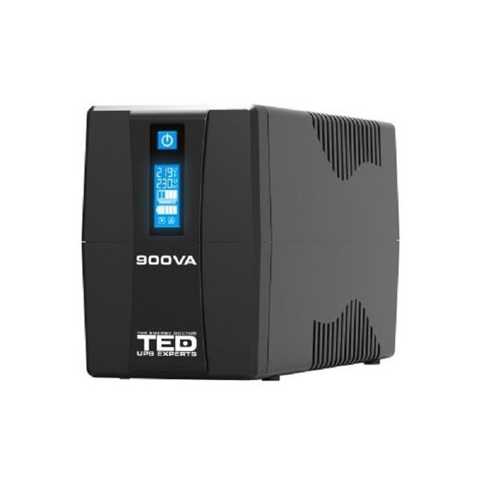 TED003942 UPS 900VA 500W 2x Schuko Ecran LCD si Acumulator 12V 9Ah TED